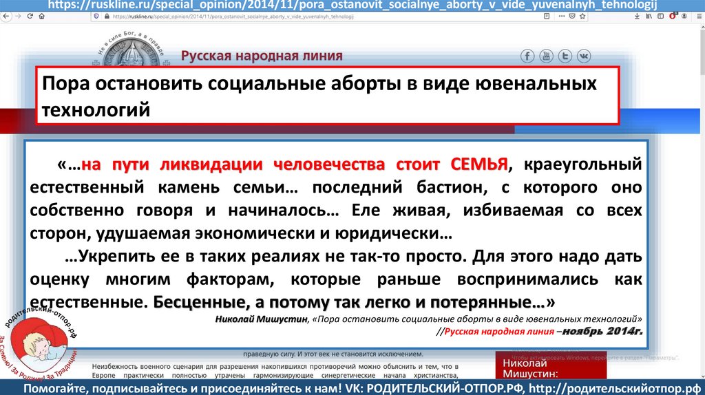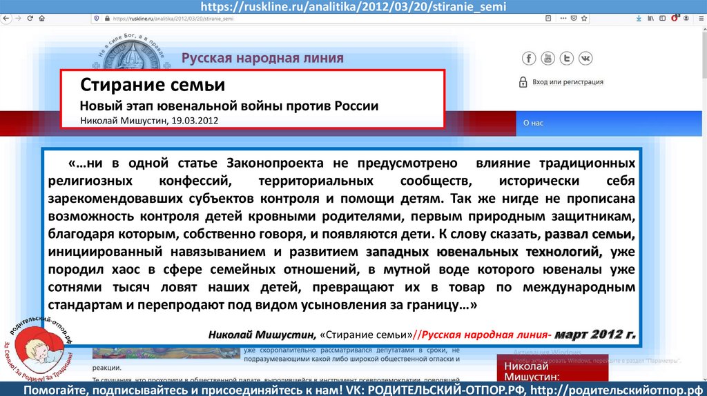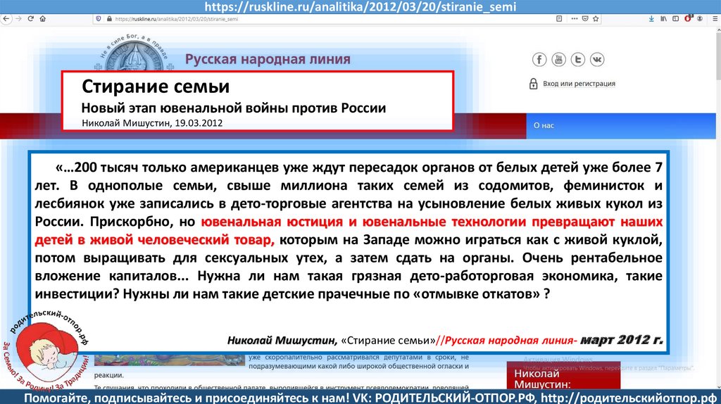 Николай Мишустин, «Стирание семьи»//Русская народная линия- март 2012 г.