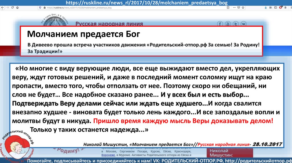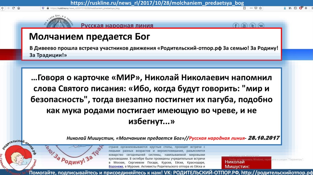 Николай Мишустин, «Молчанием предается Бог»//Русская народная линия- 28.10.2017