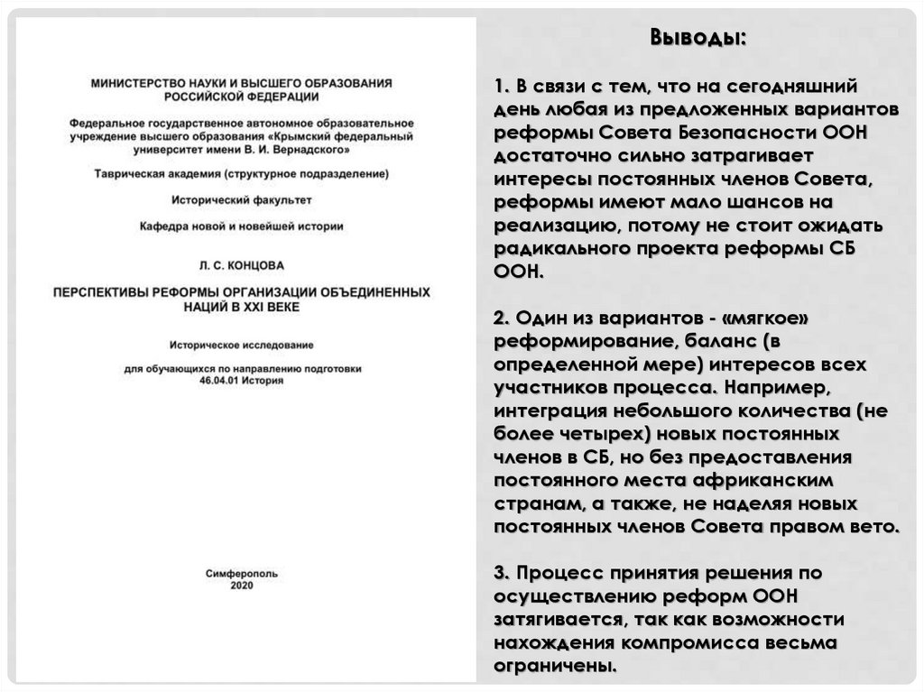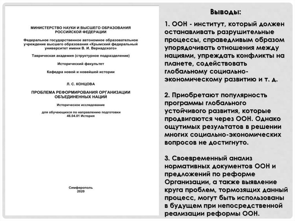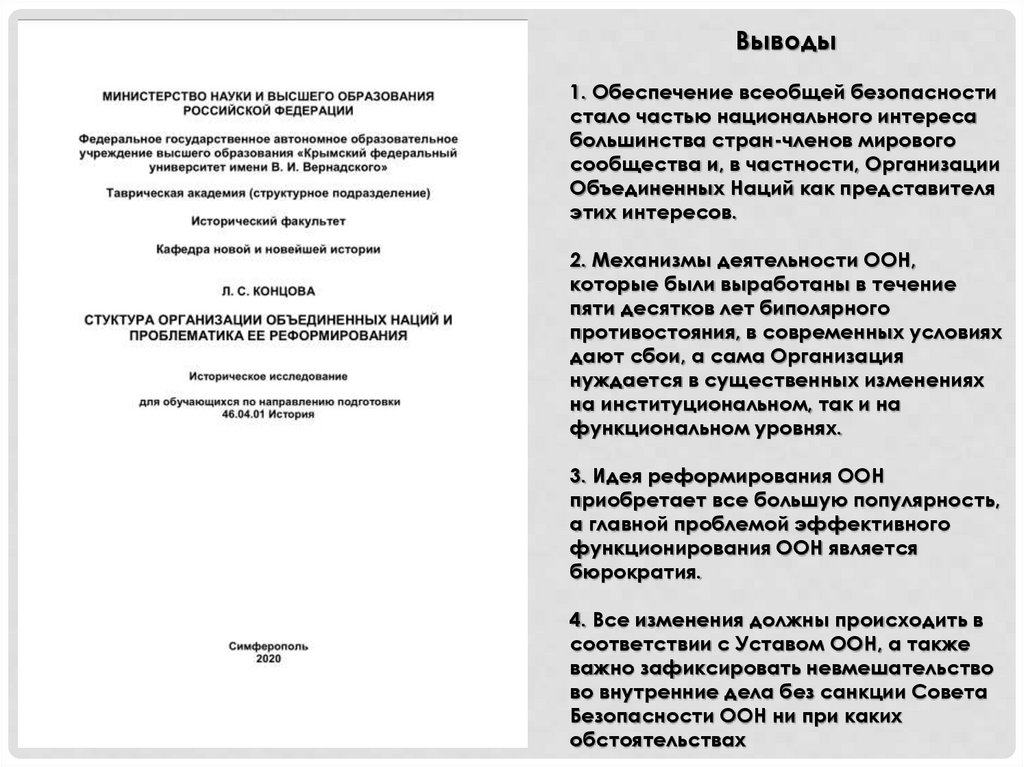 Выводы:1. ООН - институт, который должен