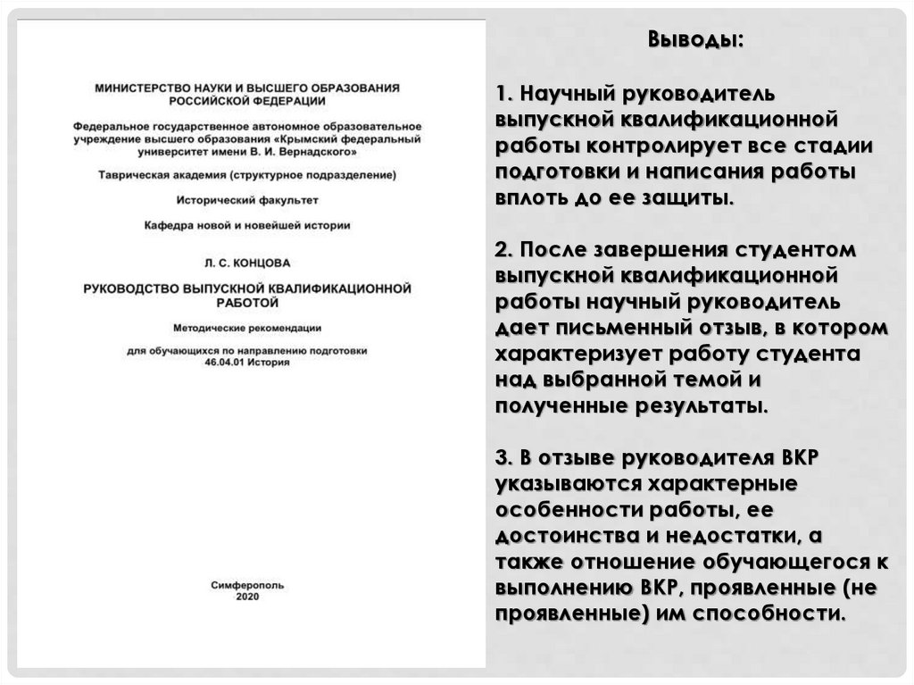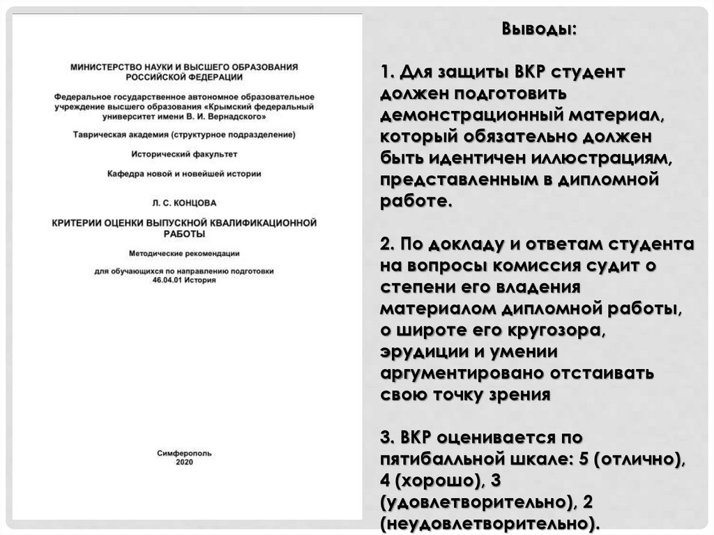Выводы:1. Для защиты ВКР студент
