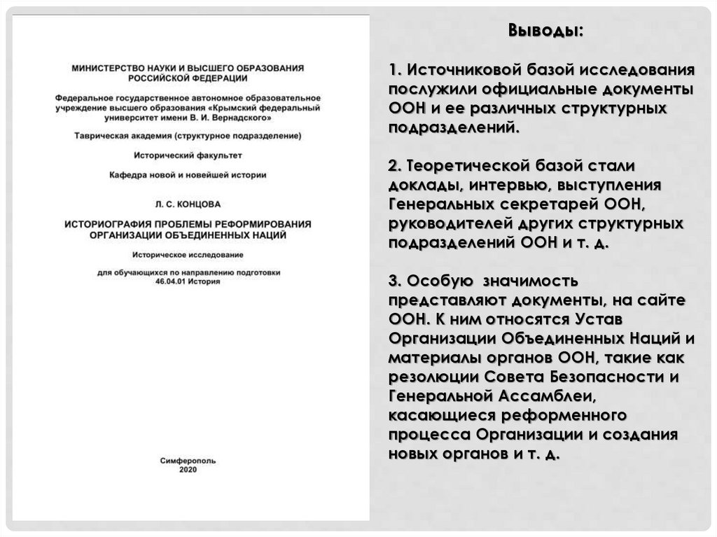 Выводы:1. Источниковой базой исследования