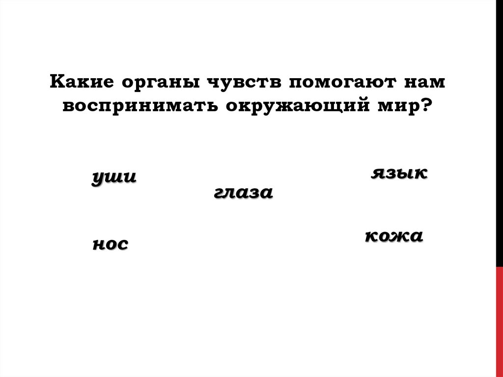 Какие органы чувств помогают намвоспринимать окружающий мир?