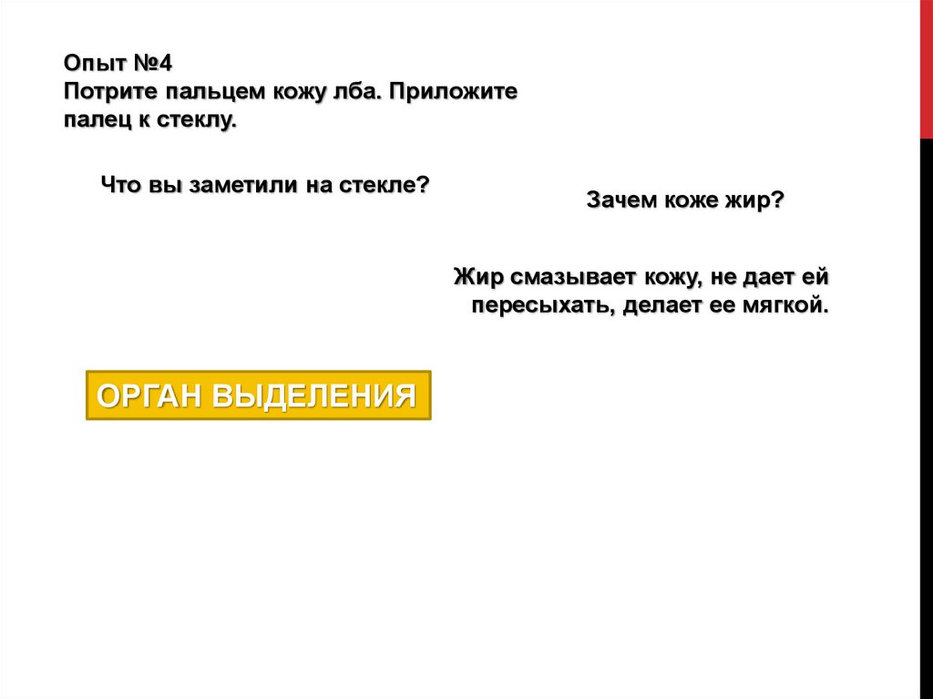 Опыт №4Потрите пальцем кожу лба. Приложите