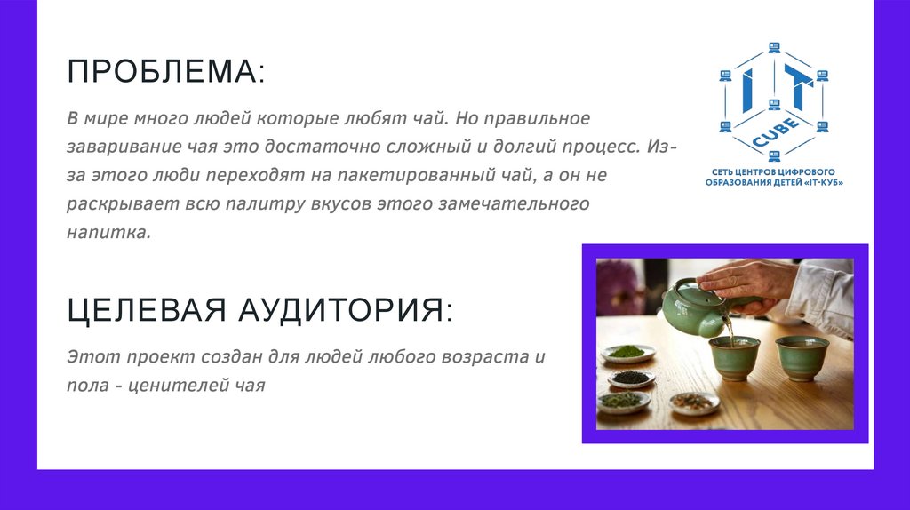 ПРОБЛЕМА:В мире много людей которые любят чай. Но правильное