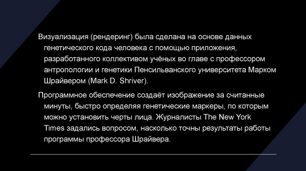 Шрайвер утверждает, что визуализация портретов по ДНК людей