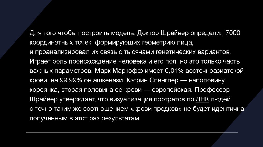 важных параметров. Марк Маркофф имеет 0,01% восточноазиатской