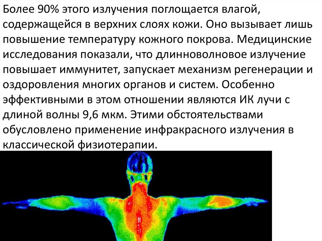 Более 90% этого излучения поглощается влагой,содержащейся в верхних слоях кожи. Оно вызывает лишь