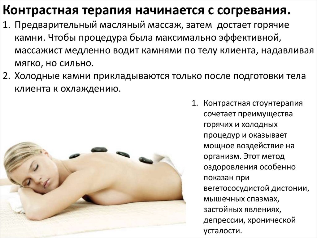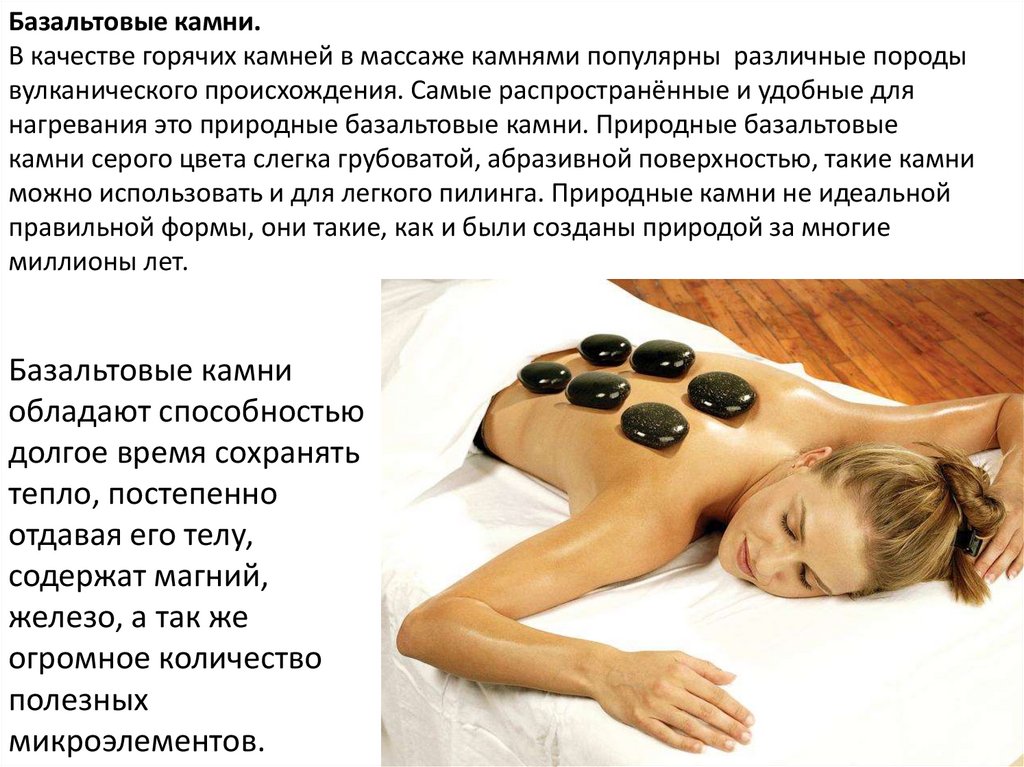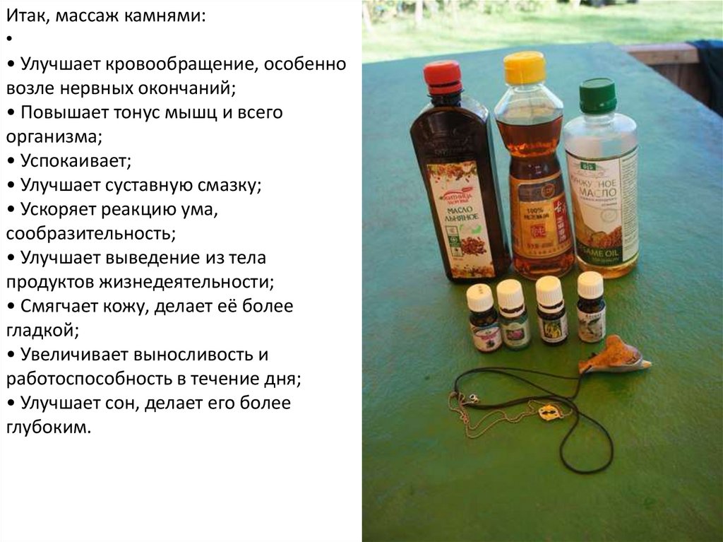 Итак, массаж камнями:• Улучшает кровообращение, особенно