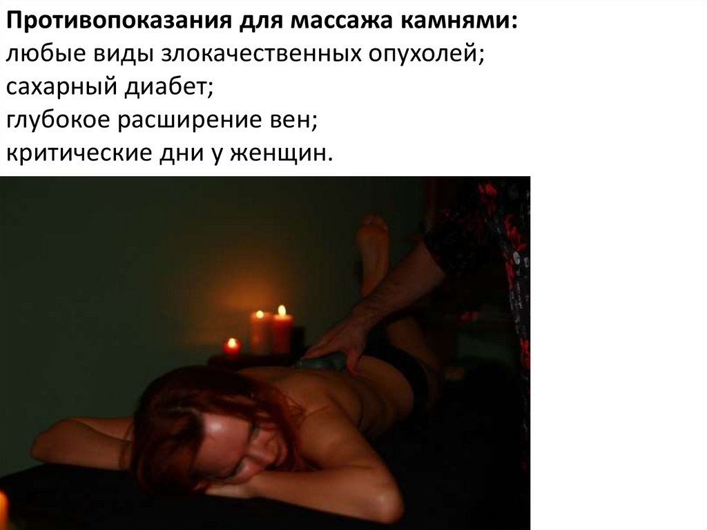 Противопоказания для массажа камнями:любые виды злокачественных опухолей;