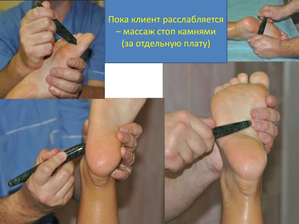 Пока клиент расслабляется– массаж стоп камнями