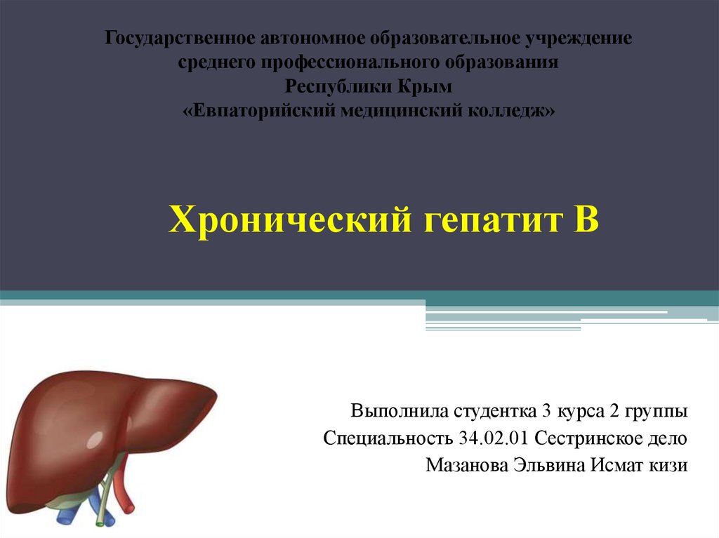 – некровоспалительное заболевание печени, вызванноевирусом гепатита В, характеризующееся наличием