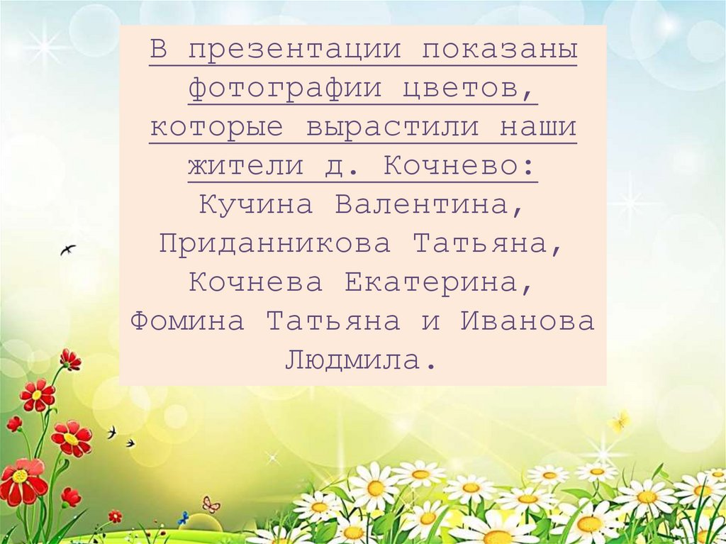 В презентации показаныфотографии цветов,