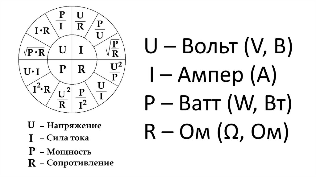 U – Вольт (V, В)I – Ампер (А)