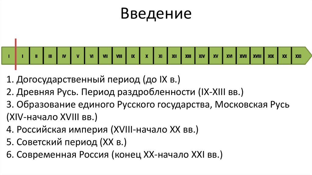 1. Догосударственный период (до IX в.)2. Древняя Русь. Период раздробленности (IX-XIII вв.)