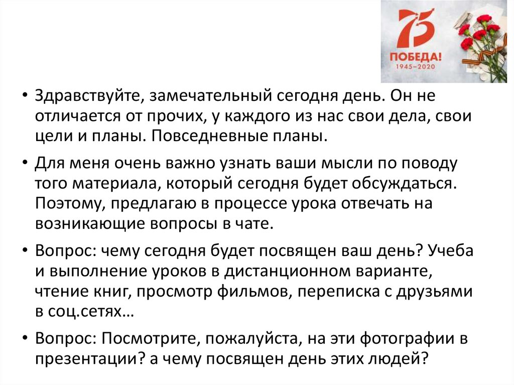 • Здравствуйте, замечательный сегодня день. Он неотличается от прочих, у каждого из нас свои дела, свои