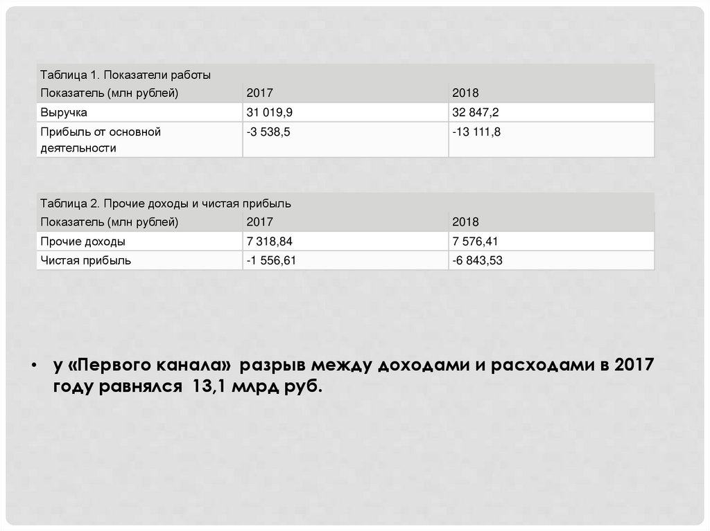 • у «Первого канала» разрыв между доходами и расходами в 2017