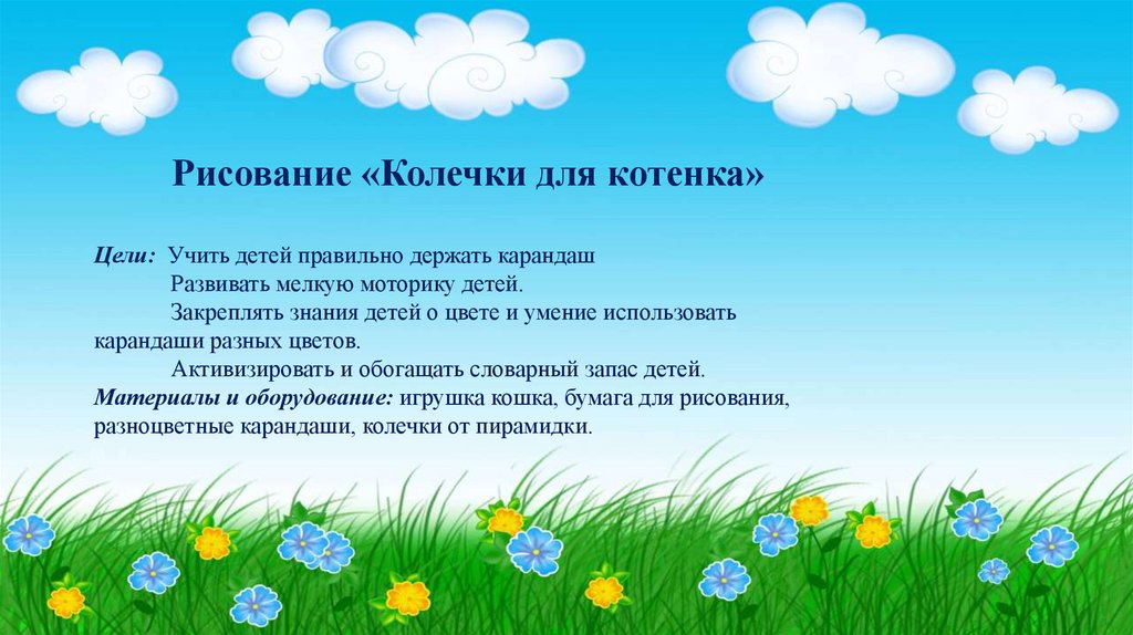 Рисование «Колечки для котенка»Цели: Учить детей правильно держать карандаш