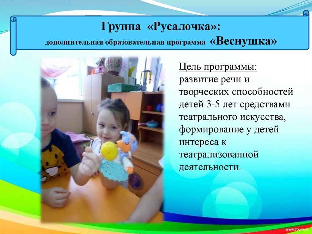 Группа «Русалочка»:дополнительная образовательная программа «Веснушка»