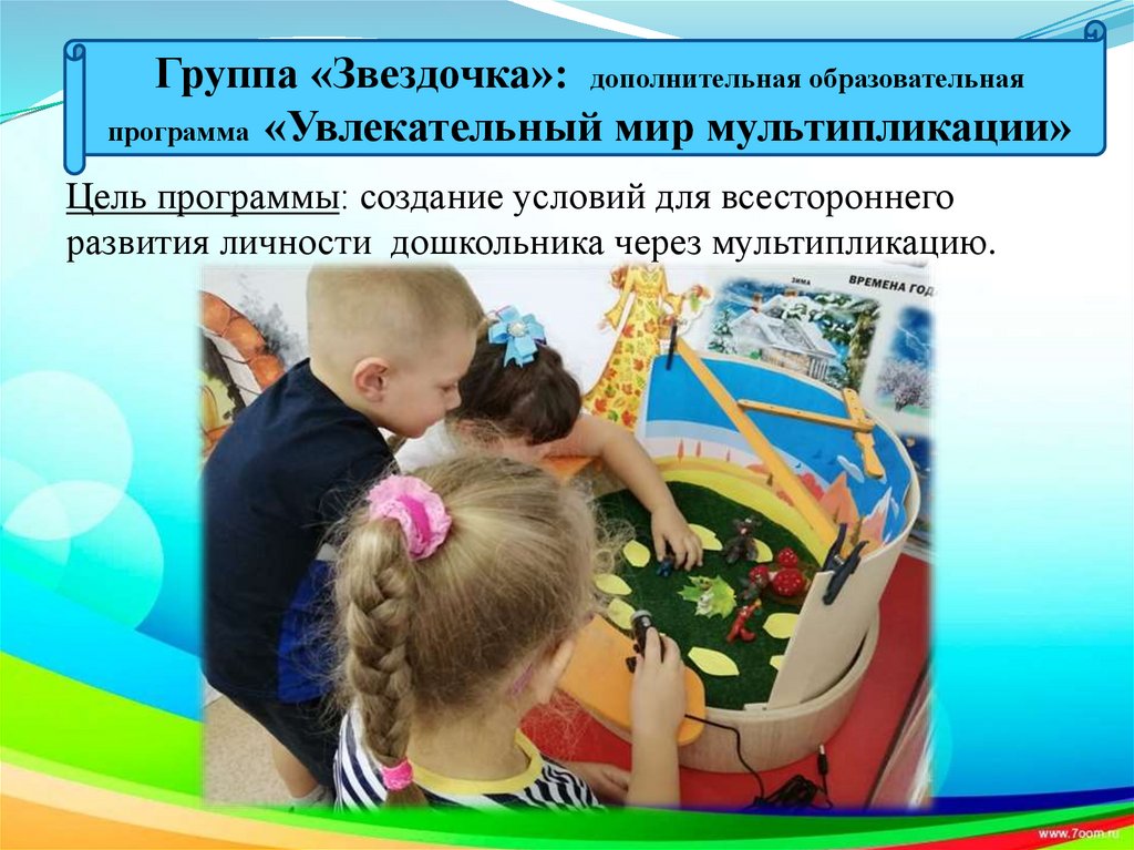 Группа «Звездочка»: дополнительная образовательнаяпрограмма «Увлекательный мир мультипликации»