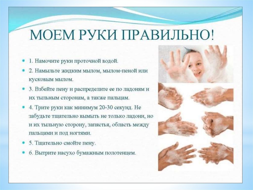 мыть руки, согласно гигиеническим правилам для