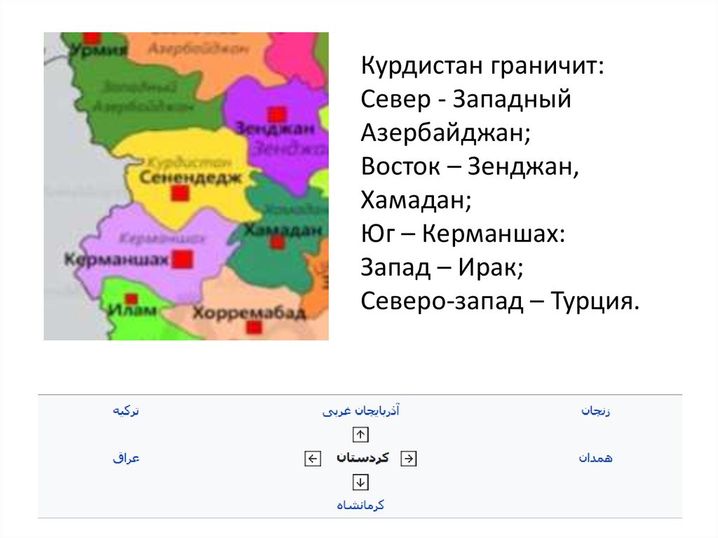 Курдистан граничит:Север - Западный