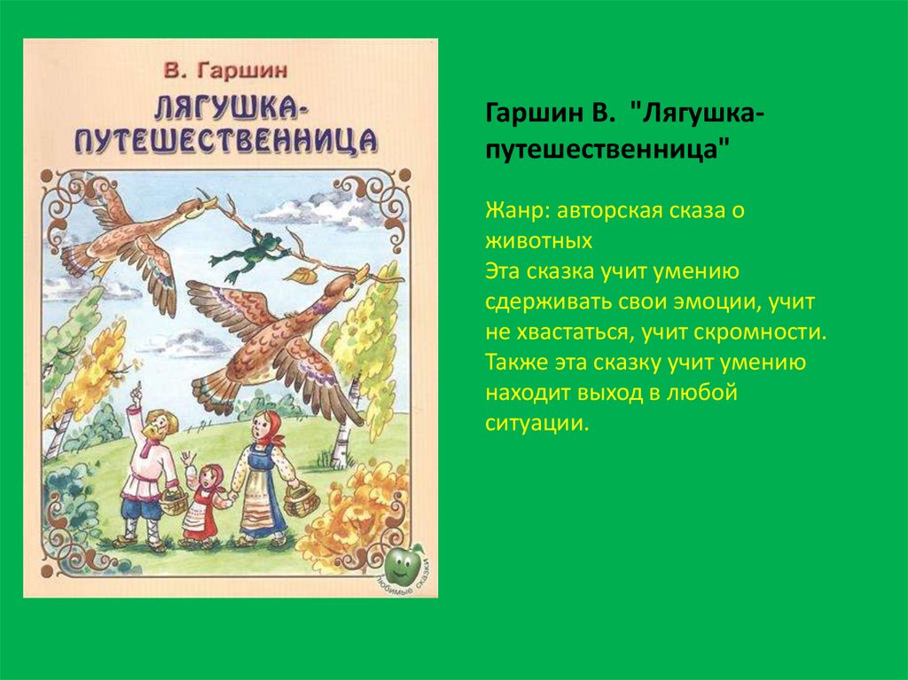 Гаршин В. "Лягушкапутешественница"Жанр: авторская сказа о