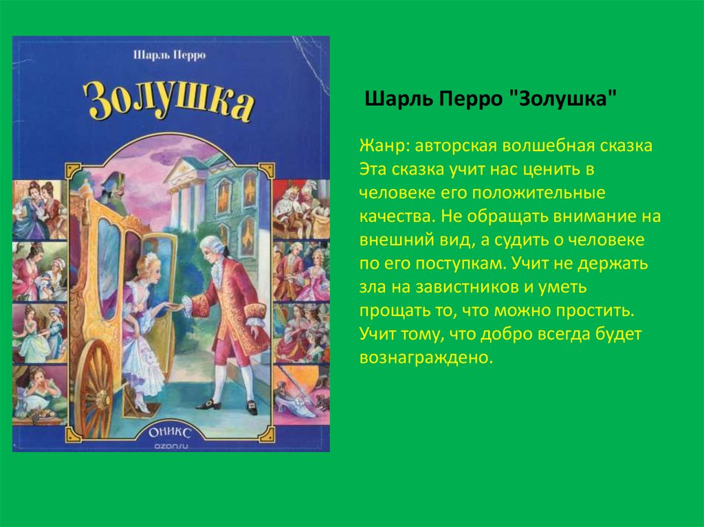 Шарль Перро "Золушка"Жанр: авторская волшебная сказка