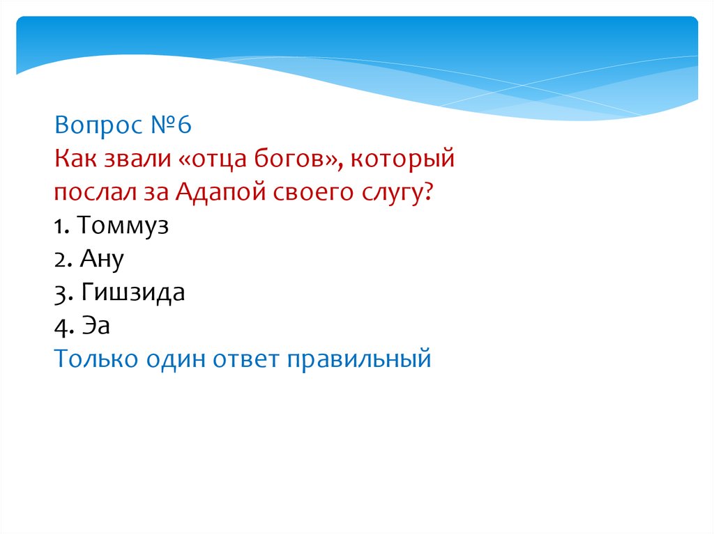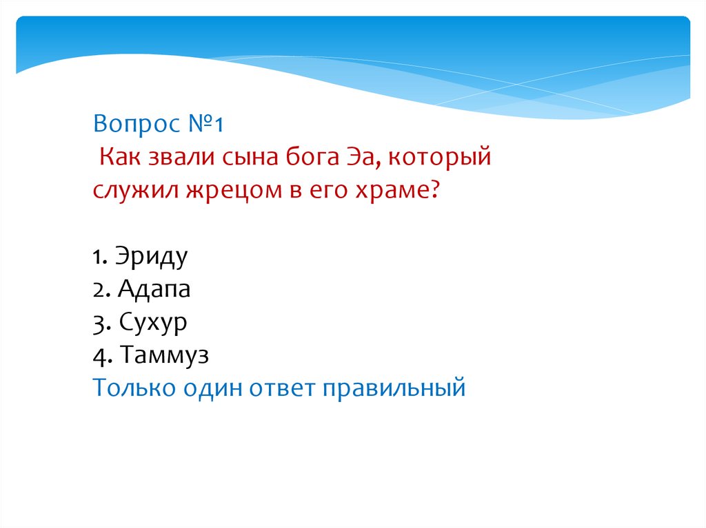Вопрос №1Как звали сына бога Эа, который