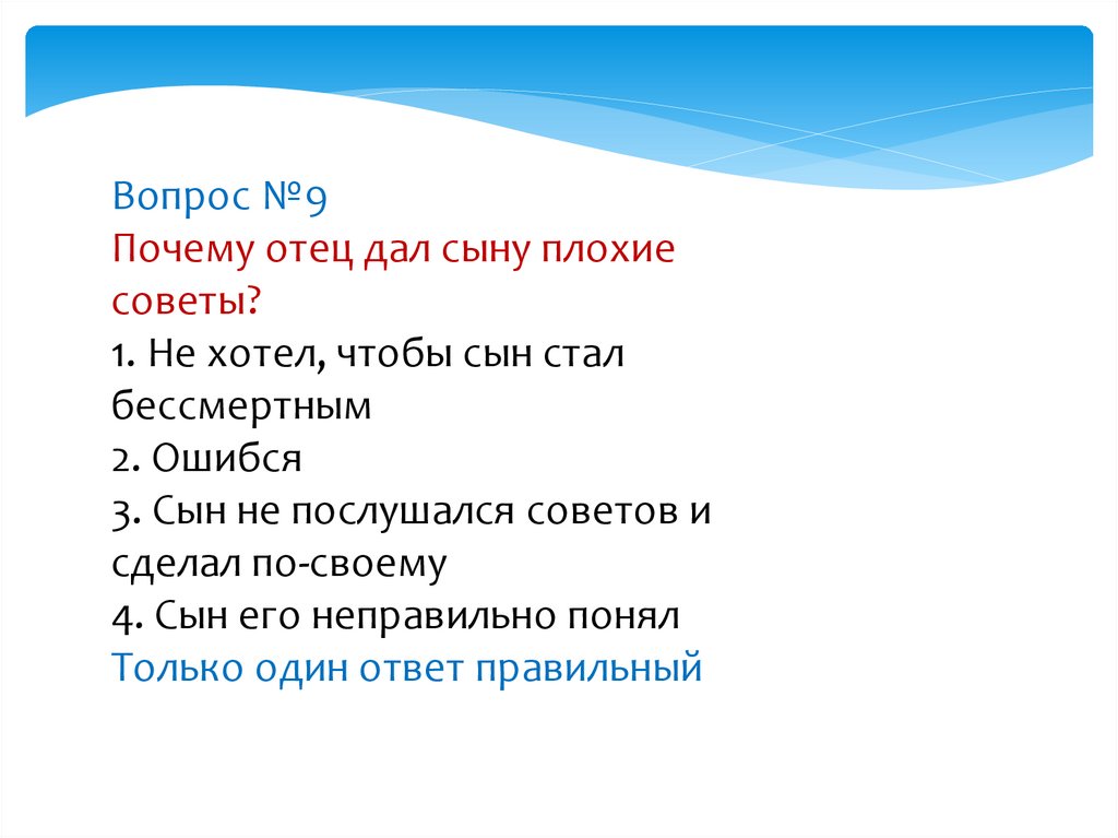 Вопрос №9Почему отец дал сыну плохие