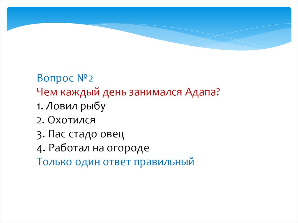 Вопрос №2Чем каждый день занимался Адапа?