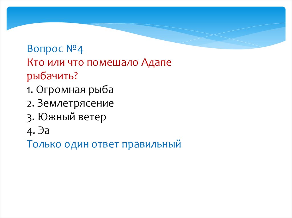 Миф аккадян (Месопотамия) «Ловец рыбы Адапа» (викторина)