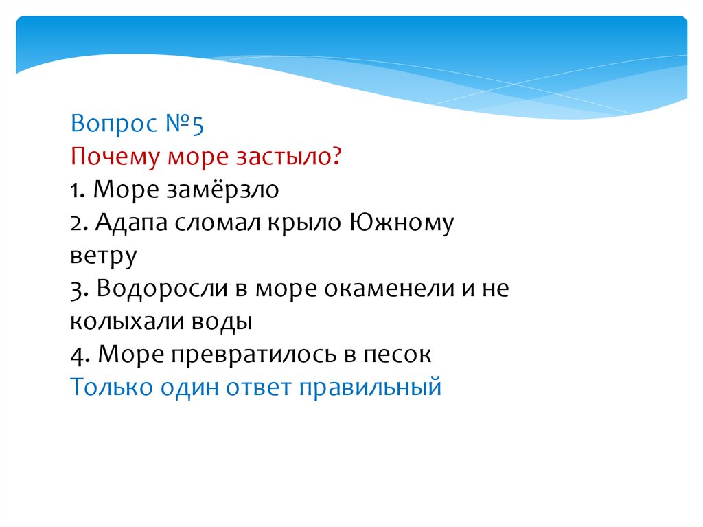 Вопрос №5Почему море застыло?
