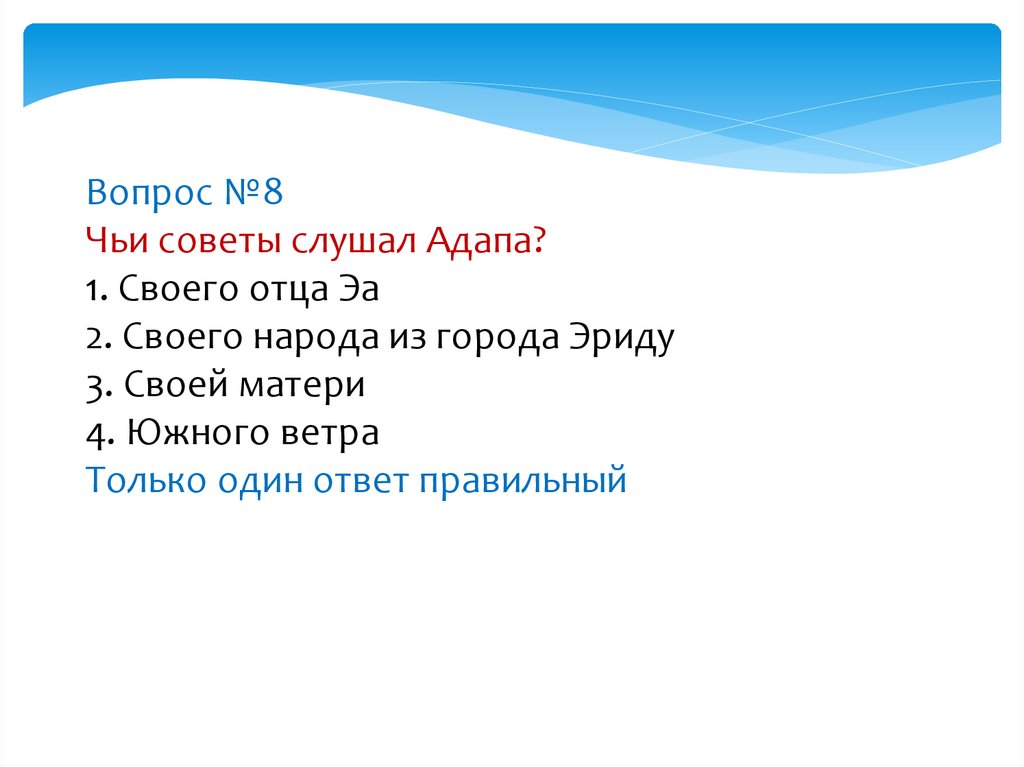 Вопрос №8Чьи советы слушал Адапа?