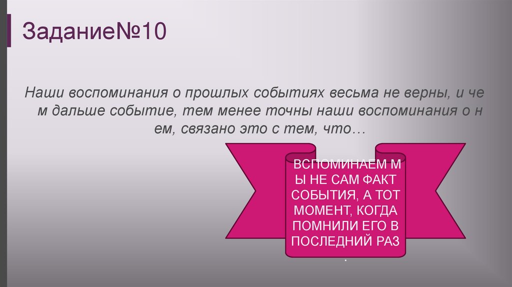 Задание№10Наши воспоминания о прошлых событиях весьма не верны, и че