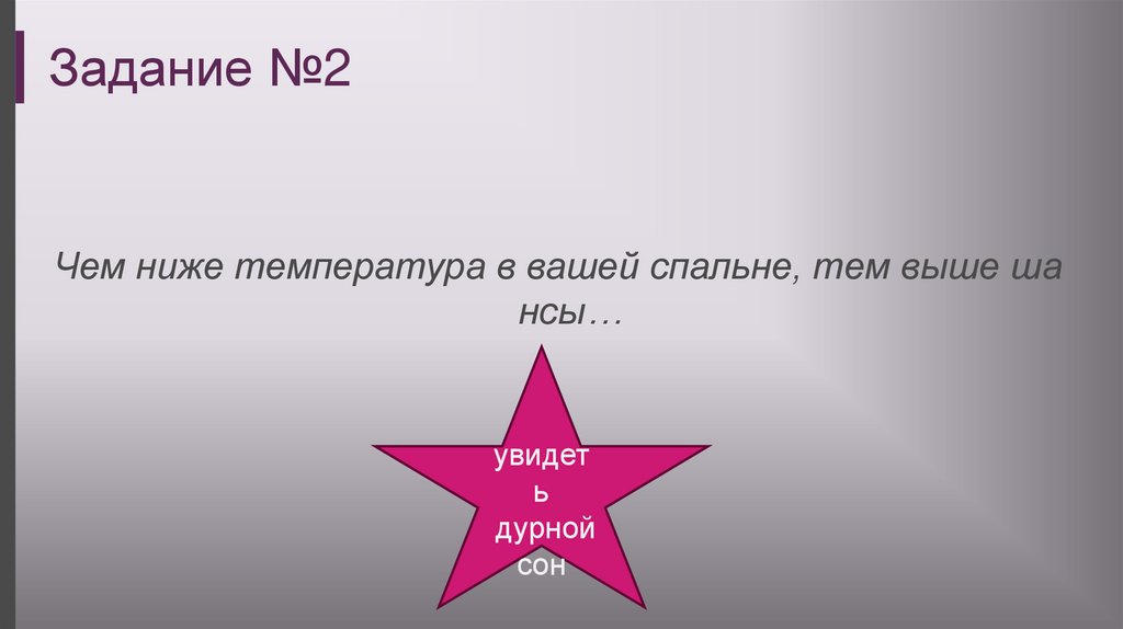 Задание №2Чем ниже температура в вашей спальне, тем выше ша