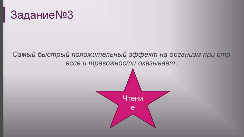 Задание№3Самый быстрый положительный эффект на организм при стр
