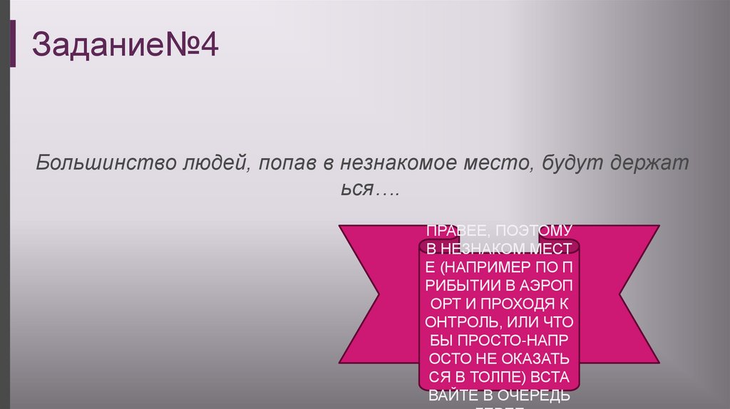 Задание№4Большинство людей, попав в незнакомое место, будут держат