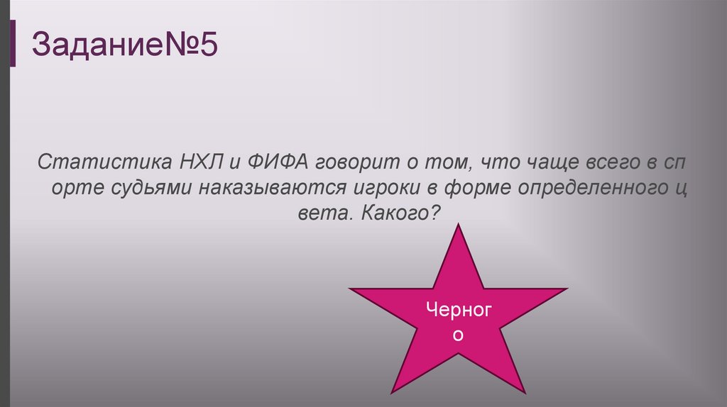 Задание№5Статистика НХЛ и ФИФА говорит о том, что чаще всего в сп