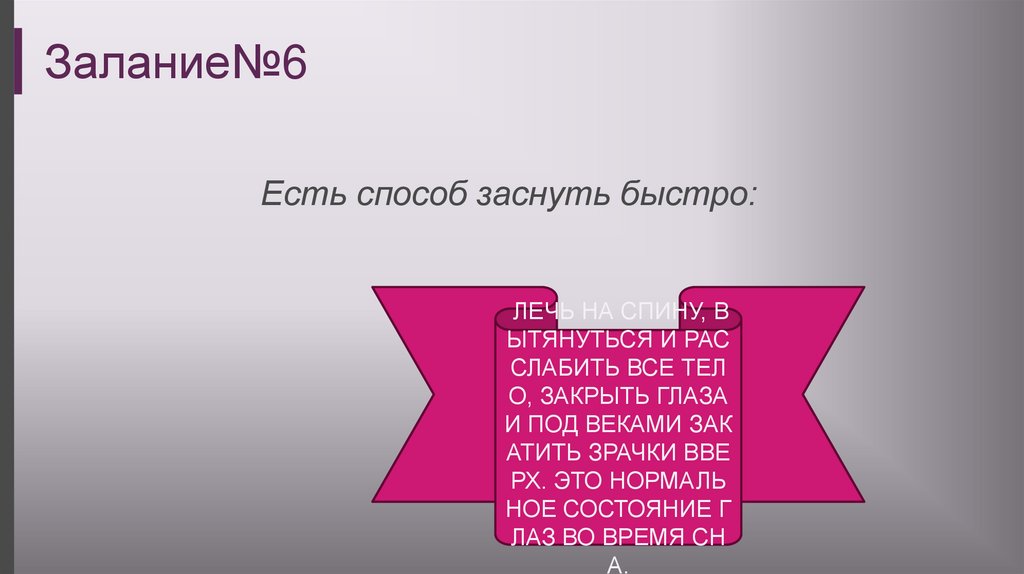 Залание№6Есть способ заснуть быстро:
