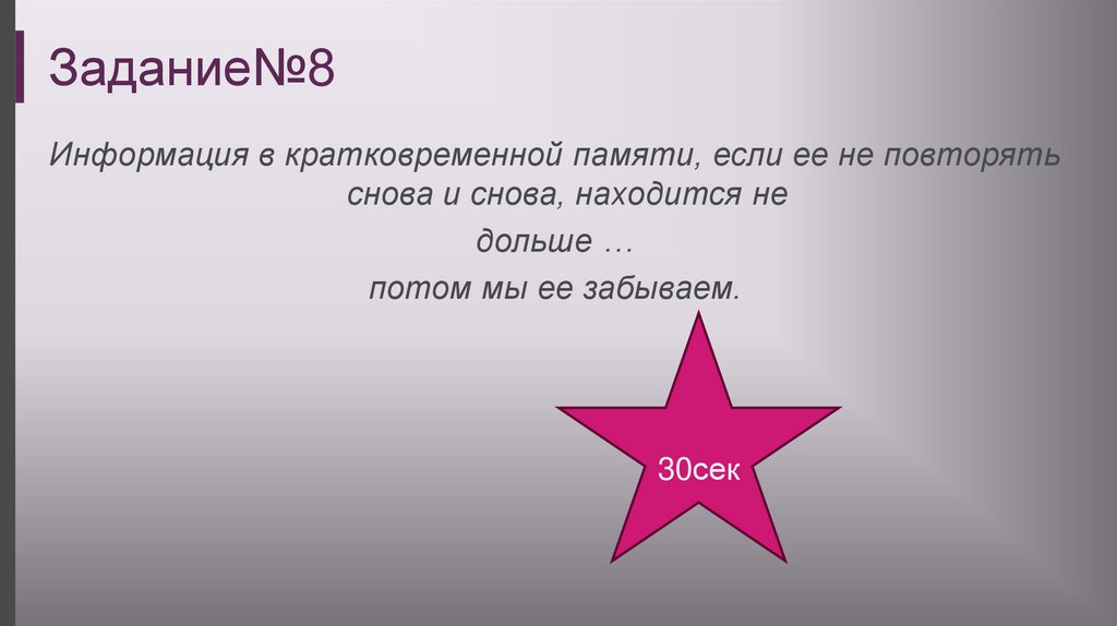 Задание№8Информация в кратковременной памяти, если ее не повторять