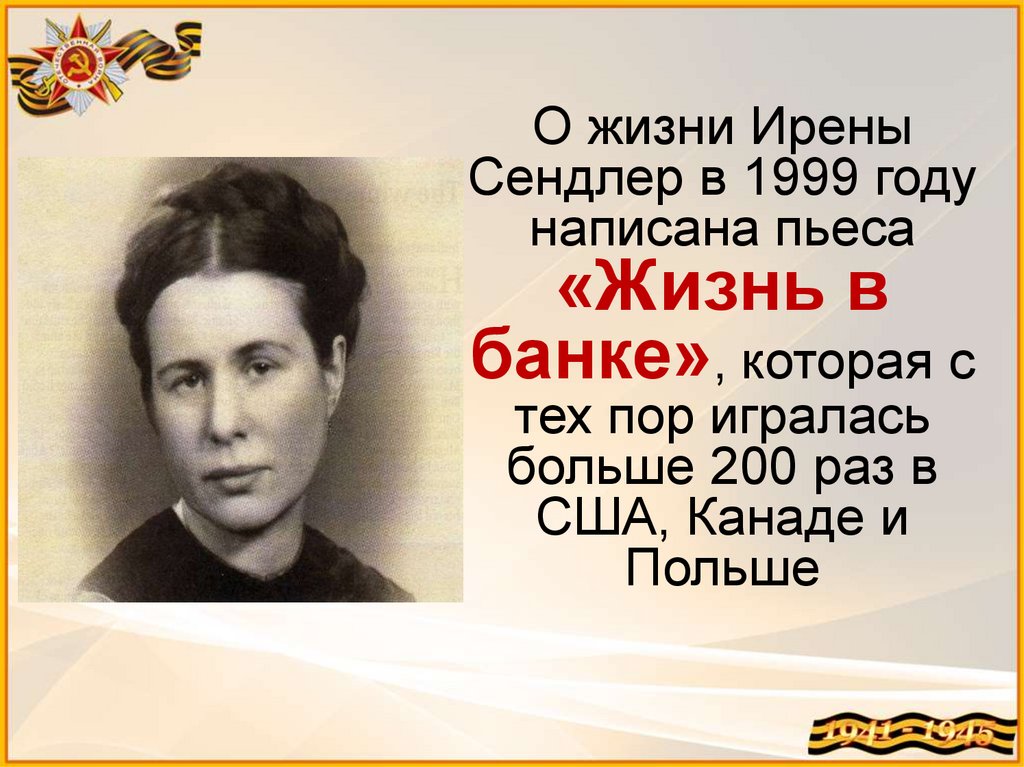 10. Первый в мире памятник Ирене Сендлер был открыт 11 мая 2014 года в Москве, на территории семейного парка «Мастерславль»