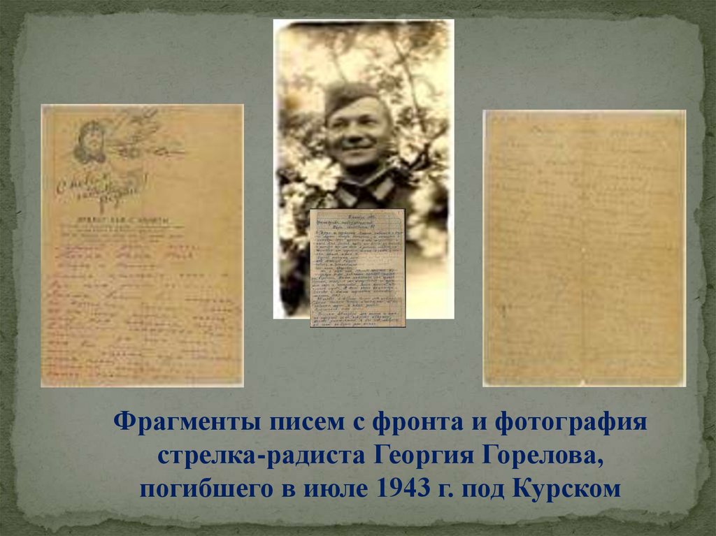 Фрагменты писем с фронта и фотографиястрелка-радиста Георгия Горелова,