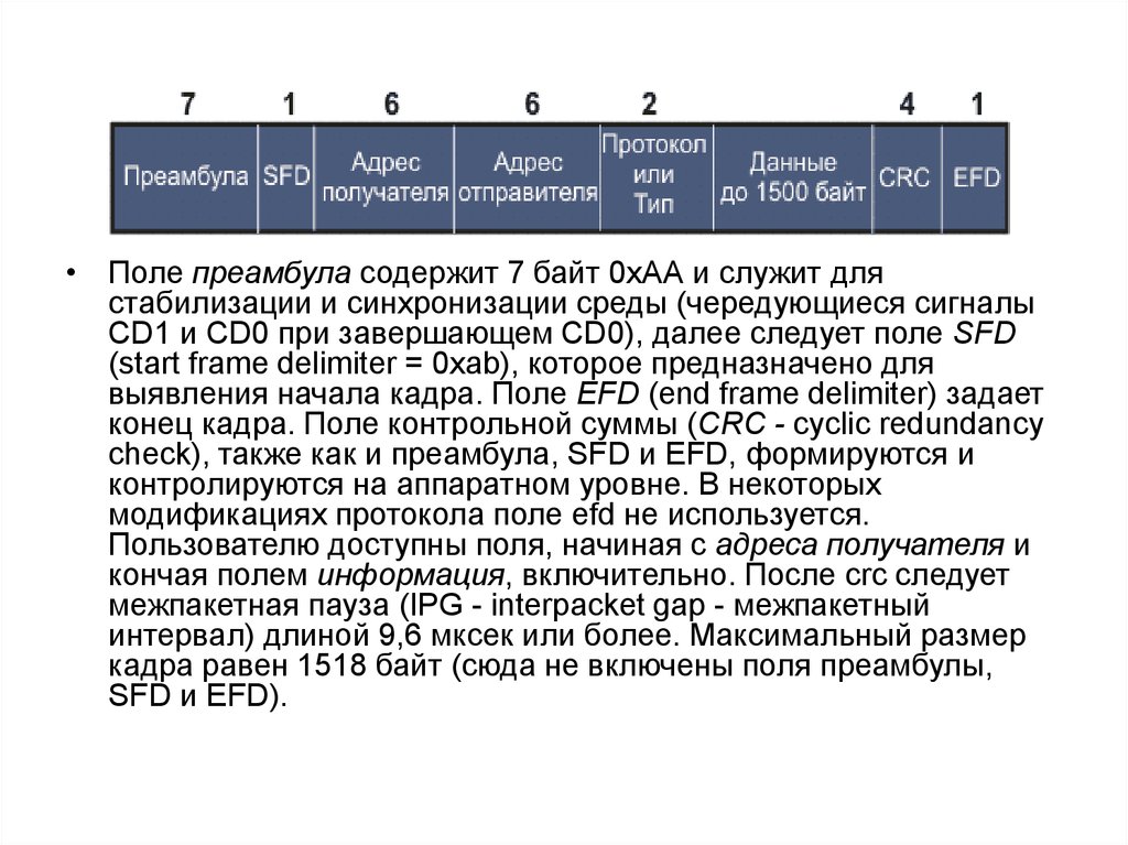 кадра равен 1518 байт (сюда не включены поля преамбулы,