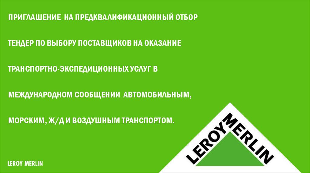 Приглашение на предквалификационный отбор. Леруа Мерлен