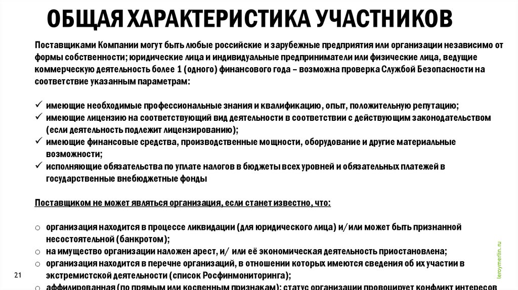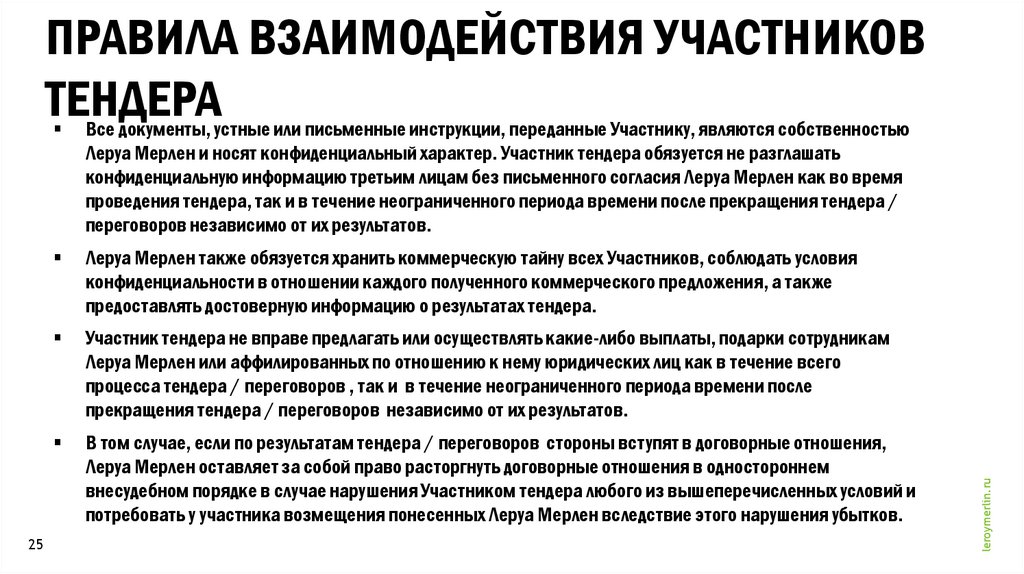 Леруа Мерлен и носят конфиденциальный характер. Участник тендера обязуется не разглашать