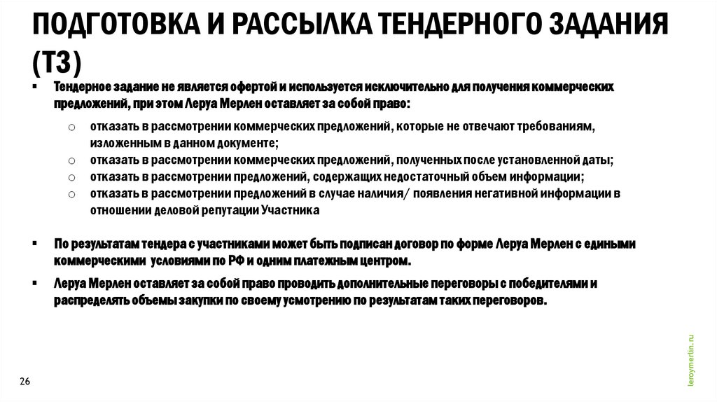 Леруа Мерлен оставляет за собой право проводить дополнительные переговоры с победителями и