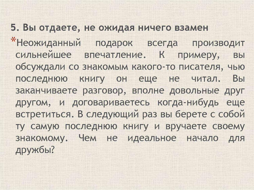 5. Вы отдаете, не ожидая ничего взамен*Неожиданный