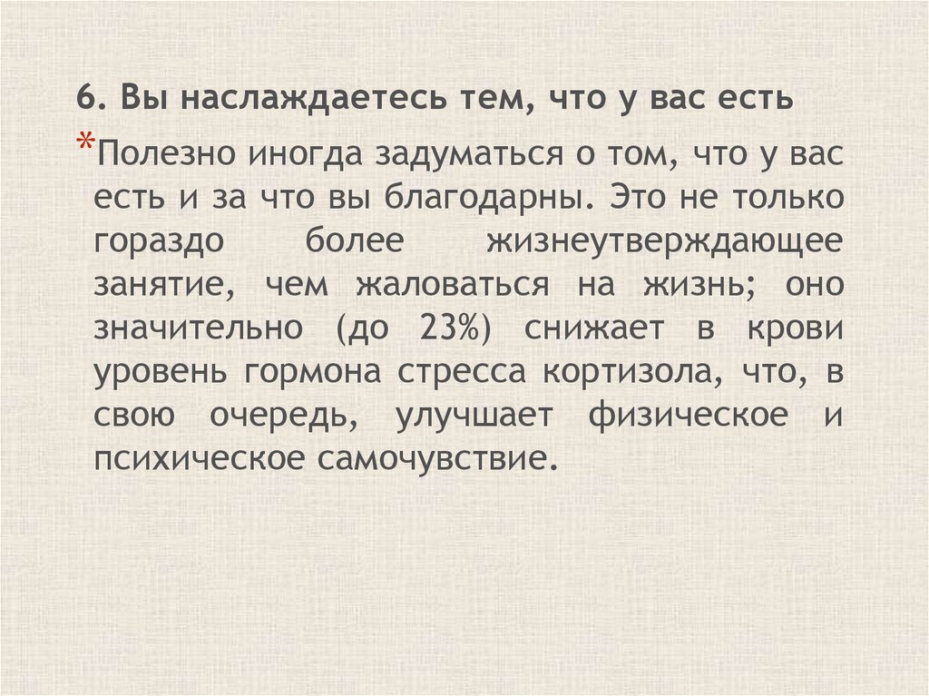 6. Вы наслаждаетесь тем, что у вас есть*Полезно иногда задуматься о том, что у вас