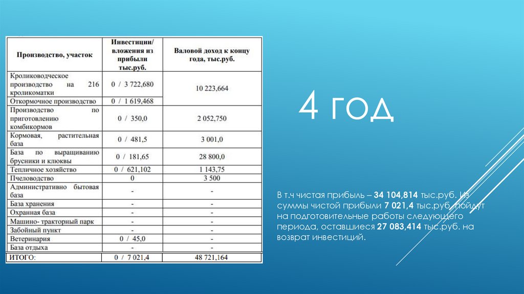 4 годВ т.ч чистая прибыль – 34 104,814 тыс.руб. Из