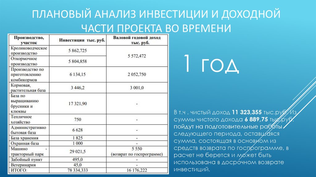 ПЛАНОВЫЙ АНАЛИЗ ИНВЕСТИЦИИ И ДОХОДНОЙЧАСТИ ПРОЕКТА ВО ВРЕМЕНИ